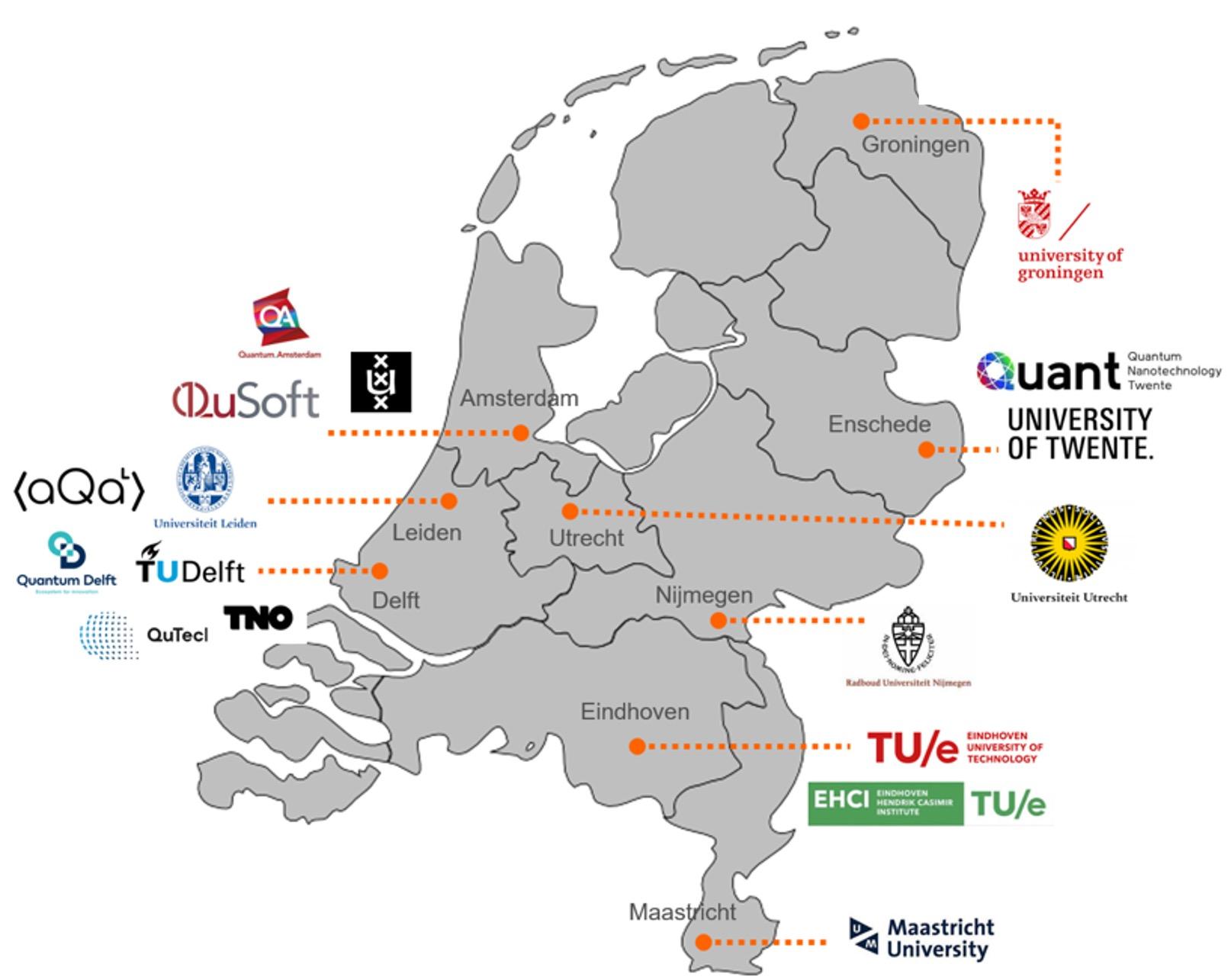 Quantum Delta has hubs in Delft, Leiden, Amsterdam, Twente and Eindhoven. Activities also take place at locations in Groningen, Utrecht, Nijmegen and Maasstricht.
