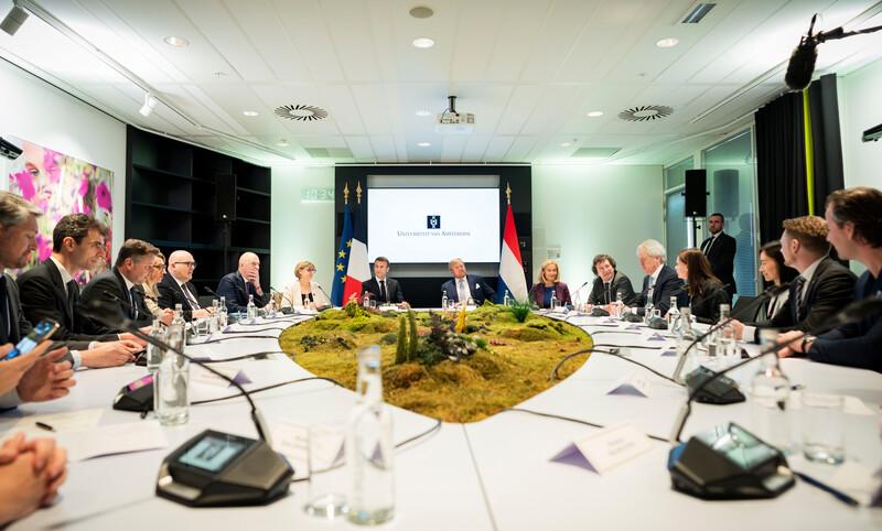 Following the lab tour, the King, President Macron, Minister Adriaansens, and Ministers Lescure and Retailleau joined a round table discussion on the future of Deeptech in Europe. During this session, which was moderated by Freeke Heijman, the delegation spoke with a diverse group of French and Dutch CEOs, investors and academics. The discussion underlined the significance of quantum technology for Europe’s open strategic autonomy.