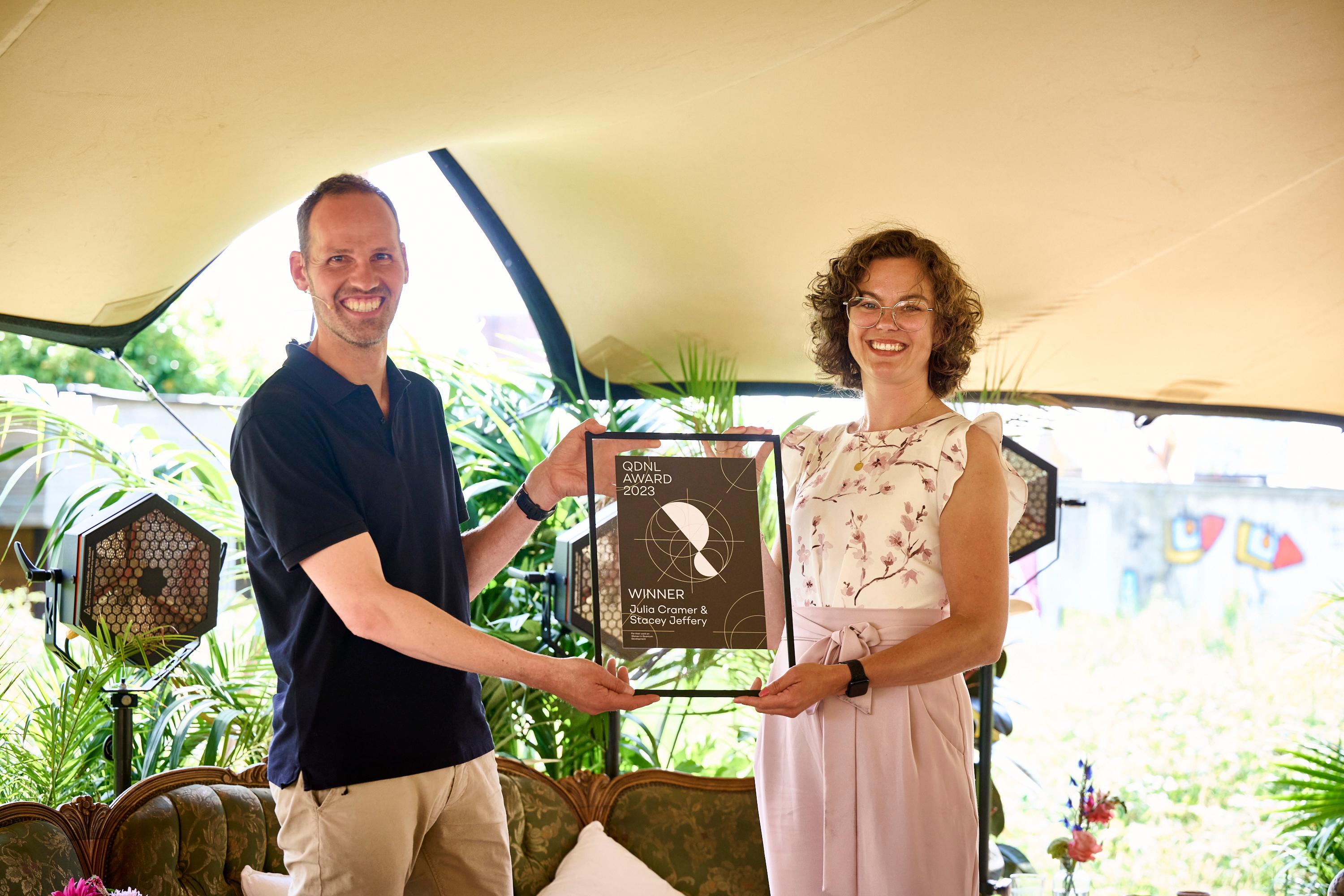The inaugural award was presented to two exceptional and highly deserving members of the Dutch quantum community: Julia Cramer (Leiden University) and Stacey Jeffery (CWI).